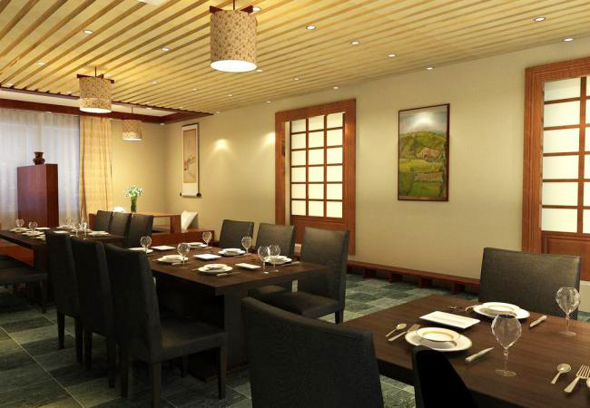 設計理念: ??濟南南部某日本料理店裝修設計,充分融合了日本傳統元素和現代元素,采用以暗黃色為主的燈光設計。以體現日式風格的清新自然。同時,墻面采用淡雅的米白色,搭配日式浮世繪風格的掛畫或燈籠,增添一份文化韻味。讓顧客在品嘗美食的同時,也能感受到濃厚的日本風情。整體設計旨在為顧客提供一個既舒適又充滿文化氣息的用餐環境。