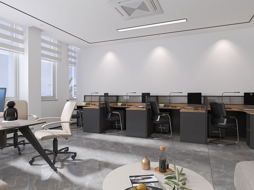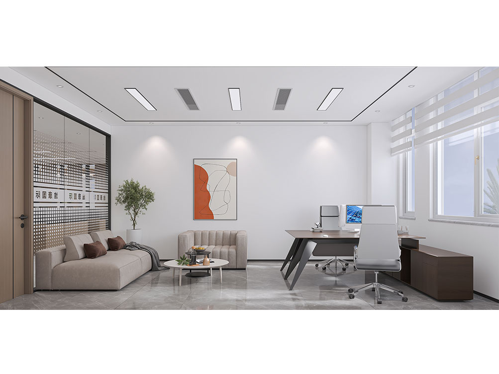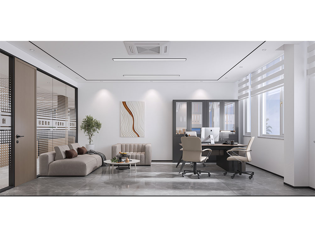 維康國際裝修效果以 “科技感 + 現(xiàn)代簡約” 為核心,主色調(diào)選用淺灰、白色搭配科技藍(lán)點綴,契合企業(yè)國際化、前沿化的定位。前臺接待區(qū)采用啞光金屬與玻璃拼接的背景墻,嵌入發(fā)光的 “維康國際” LOGO,搭配懸浮式接待臺與簡約藝術(shù)裝置,營造輕盈前衛(wèi)的第一印象;開放辦公區(qū)采用模塊化智能工位,配備可調(diào)節(jié)燈光與充電接口,桌面預(yù)留無線投屏設(shè)備,滿足高效協(xié)作需求,墻面穿插企業(yè)全球業(yè)務(wù)版圖掛畫與綠植,平衡科技感與自然氣息;獨立辦公室以木飾面與玻璃隔斷結(jié)合,保障私密性的同時提升空間通透感,書柜陳列行業(yè)典籍與企業(yè)榮譽;洽談區(qū)選用質(zhì)感布藝沙發(fā)與圓形茶幾,搭配暖光吊燈,為商務(wù)溝通營造舒適氛圍,同時在走廊、休閑區(qū)融入科技元素裝飾(如流線型燈帶、數(shù)字藝術(shù)屏),強化品牌調(diào)性,整體空間兼具國際化形象與實用辦公功能,貼合企業(yè)發(fā)展需求。